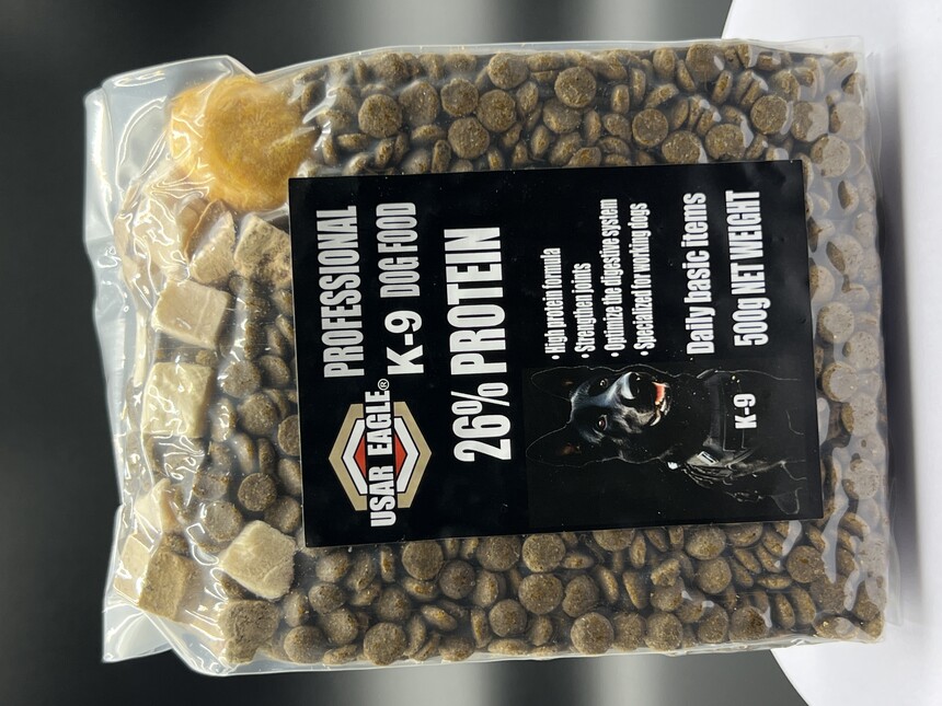 K9 specialized high-energy working dog food ——Scientific formula, suitable for all dog breeds, helps peak performance Product features: ✅ High protein and high energy: 26% protein+12% fat, meeting the high-intensity training and task execution needs of working dogs, providing long-lasting endurance and strong physical fitness. ✅ High quality ingredients with richer nutrition: Adding whole egg yolk, duck liver, and chicken chunks, rich in animal protein, vitamins, and minerals, helps with muscle growth, enhances immunity, and maintains optimal working condition. ✅ Small particle design, easy to digest and absorb: scientifically proportioned, small particle dog food is easier to chew and digest, reducing gastrointestinal burden, suitable for different dog breeds to eat. ✅ Transparent vacuum packaging, fresh and visible: locks in nutrients, moisture and oxidation resistance, keeping every bite fresh and delicious. ✅ 500g portable small package for convenient storage: accurately meets the nutritional needs of working dogs for a day, easy to carry, suitable for training, tasks, and outdoor activities. ✅ Suitable for all dog breeds: Whether it's police dogs, military dogs, search and rescue dogs, guard dogs, or pet dogs, they can all enjoy professional nutritional support and maintain peak condition! Specially developed for K9 and all dog breeds, to assist in every mission and training